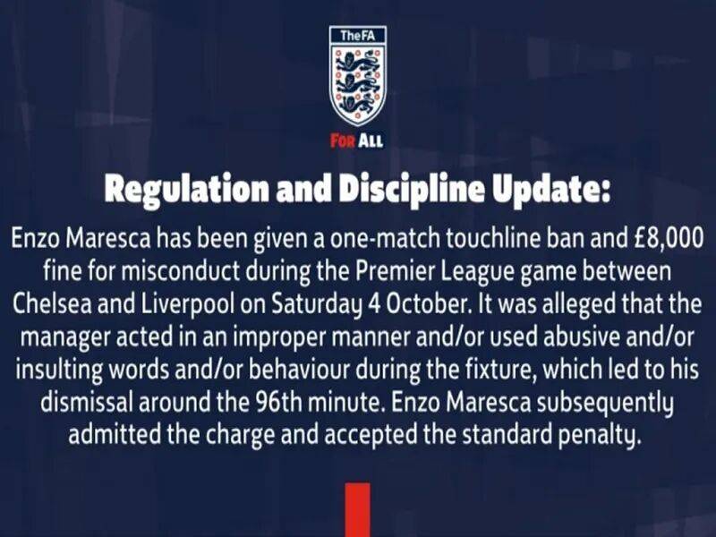 该来的还是要来的,想躲也躲不过,切尔西遭遇了重创,英足总官方宣布,马雷斯卡将接受禁赛的处罚,并且还有罚款。过去几场比赛,切尔西几乎场场有红牌,纪律问题让球队开始烦恼。英足总已经发出...