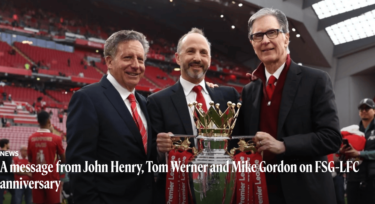 芬威集团入主利物浦足球俱乐部15周年之际,约翰-亨利、汤姆-沃纳和麦克-戈登联合发布了一篇声明,用以庆祝这一伟大事业:当我们最初与利物浦建立合作关系时,我们就知道自己正在参与一项非...
